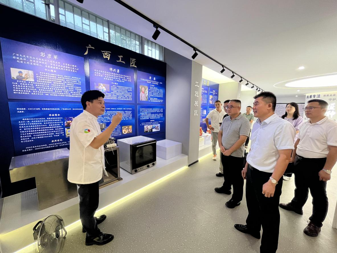 在桂林工匠展廳,調(diào)研組駐足“工匠風(fēng)華”墻前,認真聽取25 位“廣西工匠”和131位“桂林工匠”的事跡與貢獻介紹。通過實物展、代表作和影像資料,調(diào)研組深切感受到“執(zhí)著追求、精益求精、一絲不茍、追求卓越”的工匠精神內(nèi)核。期間,蘇琰凌與全國先進工作者譚興勇、自治區(qū)級非遺項目傳承人周林澤等工匠代表親切交流,細致詢問他們在技術(shù)研究、工藝創(chuàng)新、非遺傳承等方面的進展與成效,對他們長期扎根一線、專注技藝鉆研、弘揚工匠精神給予高度評價,現(xiàn)場氛圍熱烈而融洽。