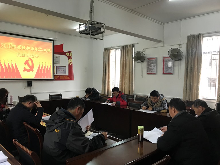 1月23日上午,桂林市職工大學(xué)召開2018年度民主生活會,會議由職工大學(xué)校長、書記詹靖主持,學(xué)校班子成員及支部委員參加了會議。桂林市總工會副主席葉雪剛同志到會指導(dǎo)。