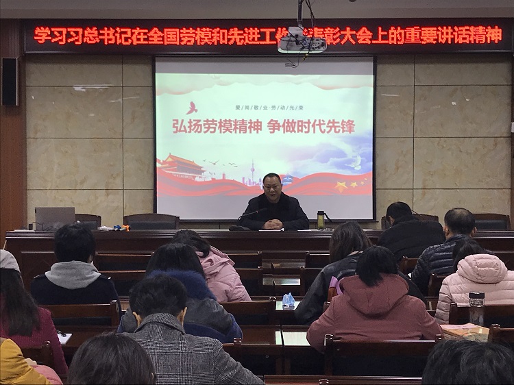 “學(xué)校全體黨員干部要按照上級(jí)黨委要求,深入學(xué)習(xí)貫徹習(xí)近平總書記在十九屆五中全會(huì)和勞模表彰大會(huì)上的重要講話精神,把思想和行動(dòng)統(tǒng)一到全會(huì)精神和習(xí)近平總書記重要講話精神上來,把智慧和力量凝聚到學(xué)校的目標(biāo)任務(wù)上來,有步驟、高標(biāo)準(zhǔn)抓好傳達(dá)學(xué)習(xí)宣傳貫徹工作,進(jìn)一步解放思想、改革創(chuàng)新、擔(dān)當(dāng)實(shí)干,加快推動(dòng)新時(shí)代職工大學(xué)服務(wù)我市職工崗位素質(zhì)技能培訓(xùn)和工會(huì)干部培訓(xùn)高質(zhì)量全面發(fā)展。”支部書記詹靖同志在黨課輔導(dǎo)講話中結(jié)合學(xué)校主責(zé)、主業(yè)和工作實(shí)際,就如何學(xué)習(xí)貫徹黨的十九屆五中全會(huì)和習(xí)近平總書記重要講話精神,謀劃好工會(huì)教育事業(yè)新發(fā)展提出了具體要求。他強(qiáng)調(diào)全體黨員干部職工要緊密團(tuán)結(jié)在以習(xí)近平同志為核心的黨中央周圍,進(jìn)一步增強(qiáng)“四個(gè)意識(shí)”、堅(jiān)定“四個(gè)自信”、做到“兩個(gè)維護(hù)”,以更加奮發(fā)有為的精神狀態(tài),敢于擔(dān)當(dāng),堅(jiān)持中國特色社會(huì)主義辦學(xué)方向,立德樹人,續(xù)寫黨的工運(yùn)事業(yè)和工會(huì)教育事業(yè)新篇章。