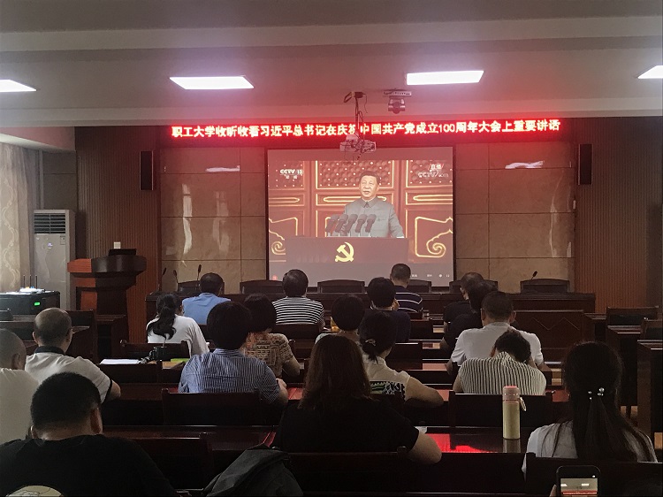 7月1日上午,中共中央在北京天安門廣場舉辦慶祝中國共產(chǎn)黨成立100周年大會,習(xí)近平總書記在會上作重要講話。桂林市職工大學(xué)組織全體黨員干部、教職工在131會議室收聽收看大會盛況。
