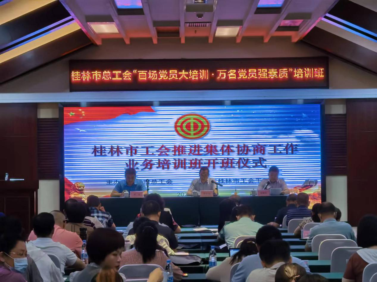 5月31日至6月2日,桂林市總工會(huì)主辦、我校承辦的2022年桂林市工會(huì)推進(jìn)集體協(xié)商工作業(yè)務(wù)培訓(xùn)班在陽朔順利舉辦。來自桂林各縣(市)、區(qū)總工會(huì)、產(chǎn)業(yè)工會(huì)、市直工會(huì)等50多個(gè)單位的工會(huì)主席、副主席、集體協(xié)商指導(dǎo)員、工會(huì)干部等近120人參加培訓(xùn)。市總工會(huì)黨組成員曹春新出席培訓(xùn)會(huì)。