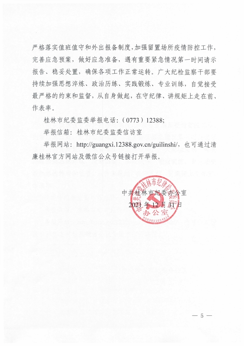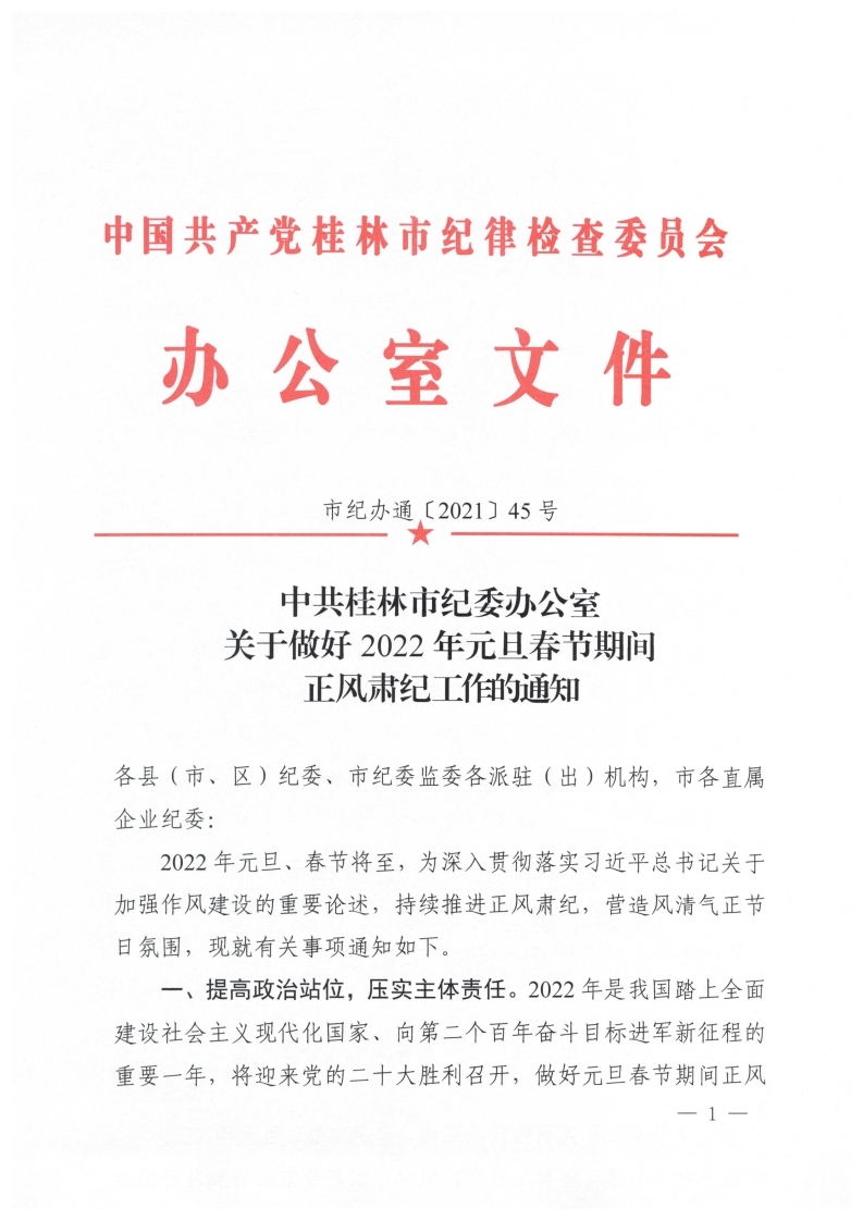 中共桂林市紀(jì)委辦公室關(guān)于做好2022年元旦春節(jié)期間正風(fēng)肅紀(jì)工作的通知