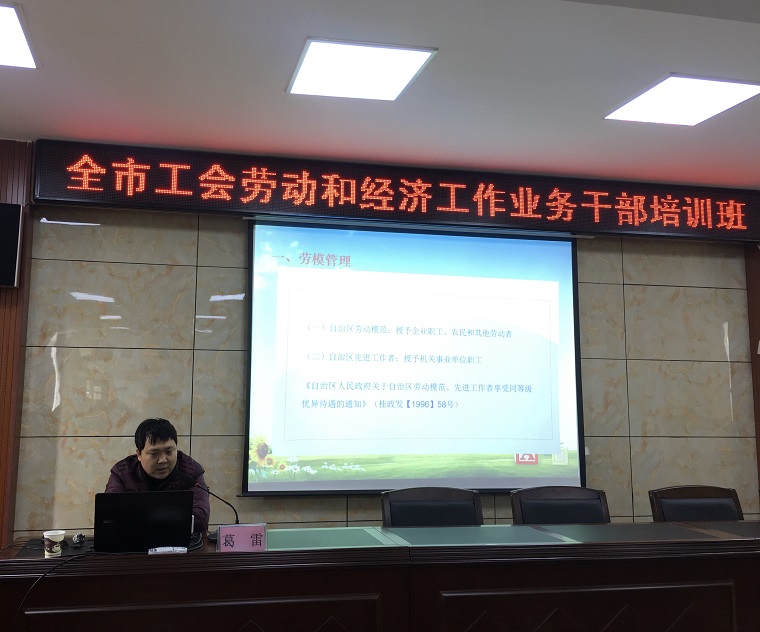 市總工會(huì)勞動(dòng)與經(jīng)濟(jì)部部長(zhǎng)葛雷為學(xué)員進(jìn)行工會(huì)勞動(dòng)經(jīng)濟(jì)工作業(yè)務(wù)培訓(xùn)