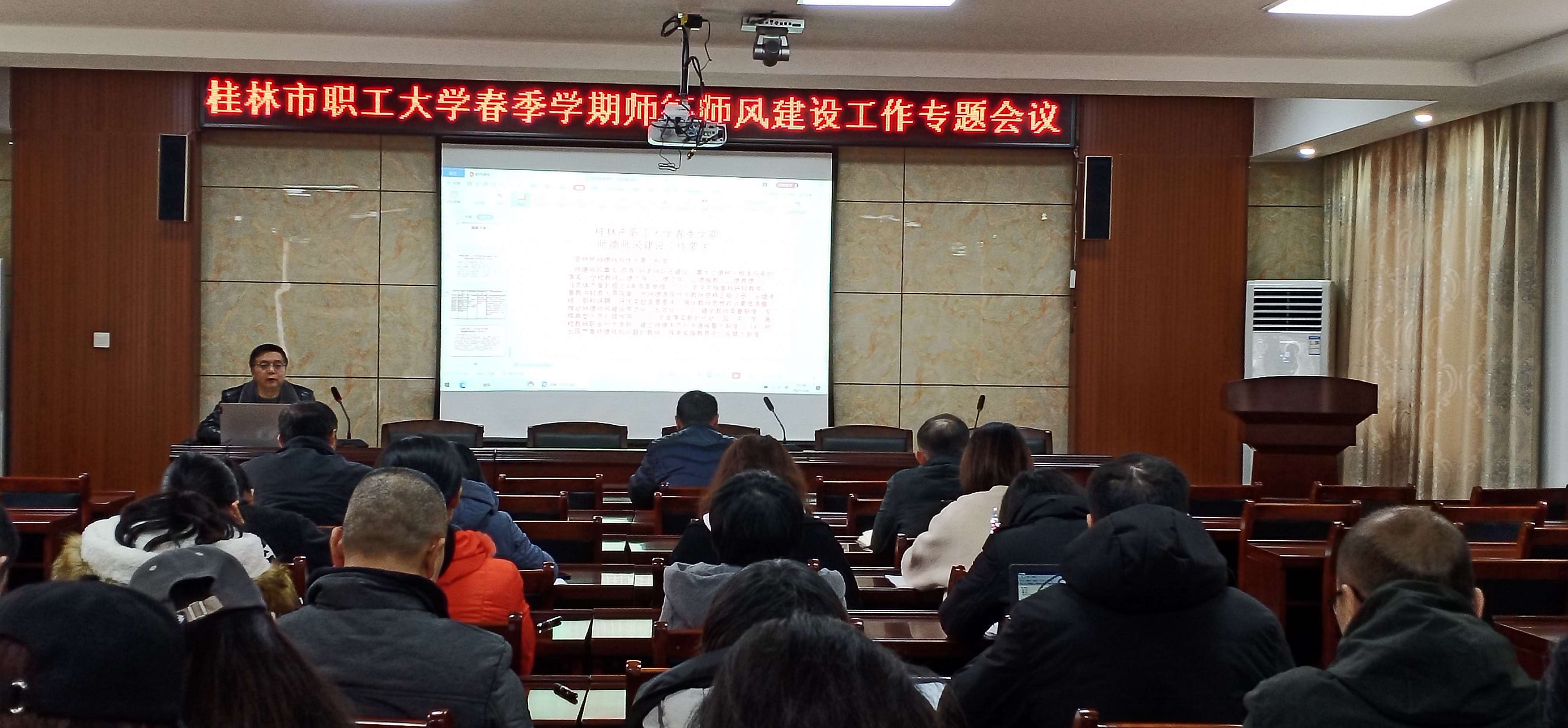 2021年3月4日上午我校在131教室召開春季學(xué)期師德師風(fēng)建設(shè)工作全體教職工大會(huì),會(huì)上謝永祥副校長(zhǎng)結(jié)合學(xué)校實(shí)際對(duì)此項(xiàng)工作提出總體要求和具體安排,強(qiáng)調(diào)師德師風(fēng)是教師素質(zhì)評(píng)價(jià)第一標(biāo)準(zhǔn),我們要以《新時(shí)代高校教師職業(yè)行為十項(xiàng)準(zhǔn)則》為行為準(zhǔn)繩,嚴(yán)格規(guī)范教師職業(yè)行為,樹立正確的歷史觀、民族觀、國(guó)家觀、文化觀,堅(jiān)定為黨育人。
