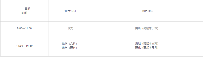 (一)考試時間為2024年10月19日、20日(具體安排詳見附件3)。