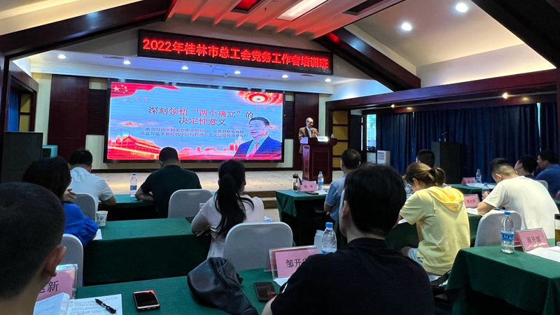 課前,參訓學員以黨支部為單位集中自學了《中國共產(chǎn)黨章程》《中國共產(chǎn)黨支部工作條例(試行)》《習近平總書記關于工人階級和工會工作的重要論述》等重要黨內(nèi)法規(guī)和書籍。課上,市政協(xié)辦公室二級調(diào)研員、桂林市黨的創(chuàng)新理論宣講團成員葉雪剛以《深刻領悟“兩個確立”的決定性意義》為題,對工會干部如何做到“兩個維護”堅持“兩個確立”等方面進行了深入淺出的講解。市委直屬機關工委副書記張加勝以《知職責、懂方法、抓落實,推進機關黨建高質量發(fā)展》為題,對嚴格落實“三會一課”、規(guī)范記錄“五個本子”、扎實開展“周五黨日+”活動等分別進行詳細說明,并就如何創(chuàng)建特色黨建品牌、打造特色黨建陣地、一體推進“模范機關、清廉機關”建設做出具體指導。