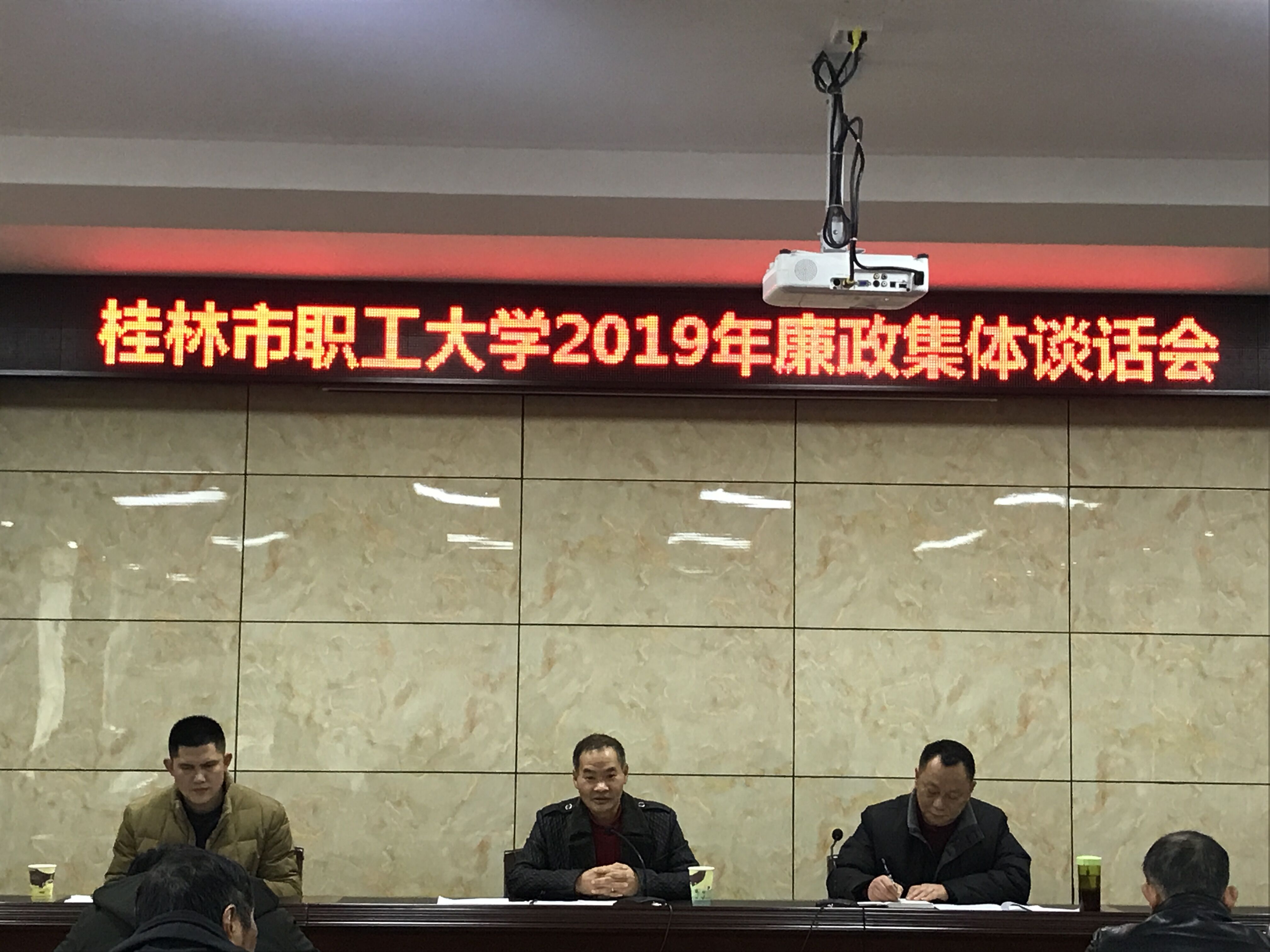 為深入學習貫徹黨的十九大精神特別是習近平新時代中國特色社會主義思想,全面落實從嚴治黨的決策部署與“兩個責任”,踐行“四種形態(tài)”,進一步推進全校黨風廉政建設,提高黨員干部廉潔自律意識,1月8日下午,我校在131會議室召開集體廉政談話會,校領導班子成員、部門中層正副職以及全體黨員參加會議。