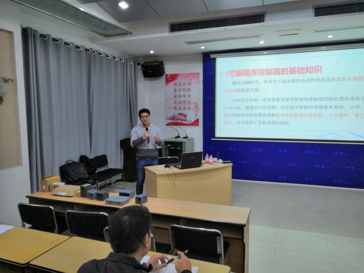 本期培訓(xùn)的項(xiàng)目是PLC控制器應(yīng)用。我校委派機(jī)械電子工程專業(yè)工程師張勇老師,就PLC的組成及基本結(jié)構(gòu)、PLC指令、PLC程序編寫等課題與長(zhǎng)海的職工熱烈探討,就職工工作生產(chǎn)中遇到的實(shí)際問(wèn)題積極互動(dòng),深入交流,取得了良好的反響。