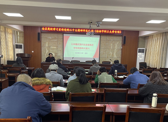 為深入學(xué)習(xí)宣傳貫徹黨的二十大精神,更好地團(tuán)結(jié)引領(lǐng)廣大教職工聽(tīng)黨話、跟黨走,把力量凝聚到黨的二十大確定的各項(xiàng)任務(wù)上來(lái),根據(jù)上級(jí)決策部署和學(xué)校工作安排,12月15日上午,全區(qū)高校學(xué)習(xí)宣傳黨的二十大精神師生巡講團(tuán)到我校開(kāi)展專題宣講。學(xué)校全體教職工參加了會(huì)議。會(huì)議由黨支部副書記劉庚主持。