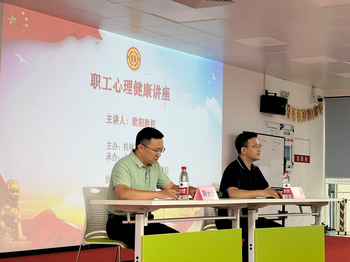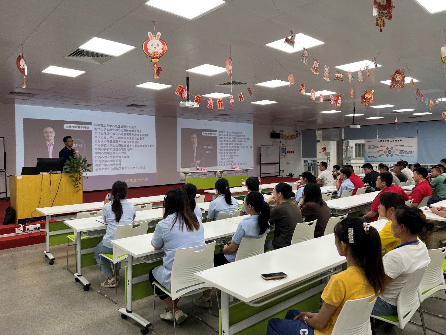 為關愛職工心理健康,減輕職工工作壓力,提高工作效能,2023年7月13日上午,桂林市職工大學派出心理健康專家為桂林比亞迪實業(yè)有限公司開展《職工心理健康維護與壓力管理》心理講座。