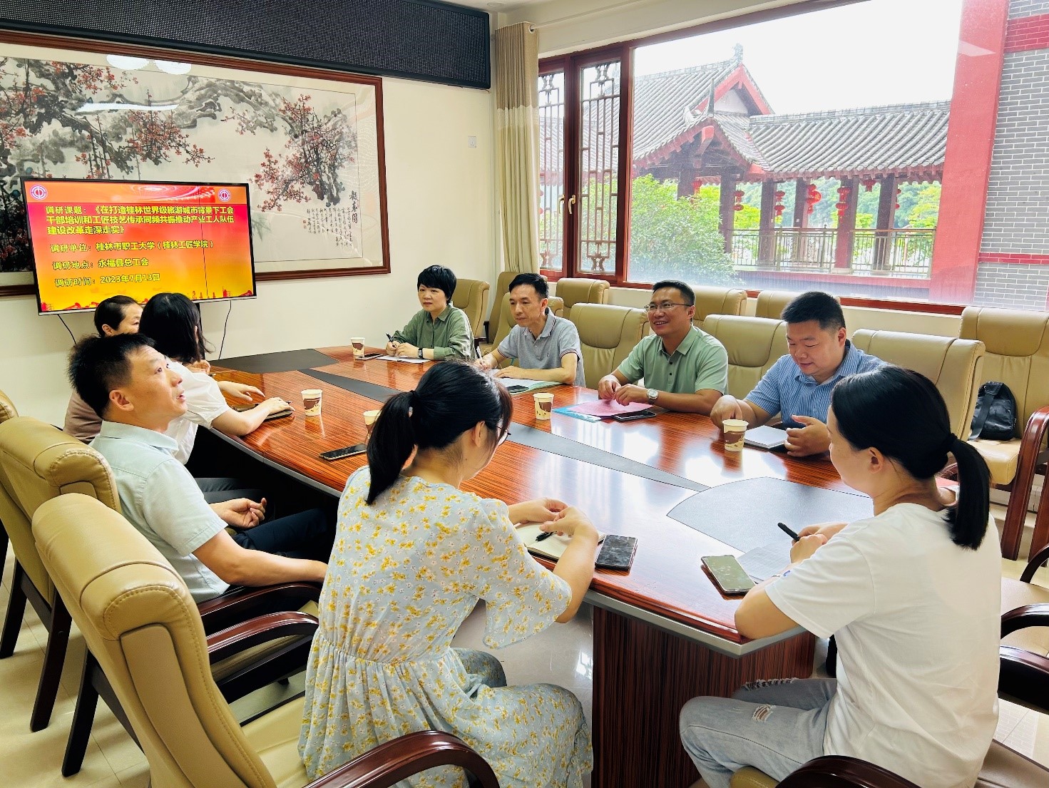 與此同時,為繼續(xù)推進《在打造桂林世界級旅游城市背景下工會干部培訓和工匠技藝傳承同頻共振推動產業(yè)工人隊伍建設改革走深走實》課題的深入調研,在比亞迪公司開展心理講座后,桂林市職工大學校長蔣大為、培訓部部長謝振凱、財務部部長劉丹、工會主席王智超、培訓部副部長莫瑋儀等一行五人又趕到永??h總工會開展調研工作,永??h總工會書記唐德明、副主席凡麗貞、組宣部部長譚芬等一起陪同。