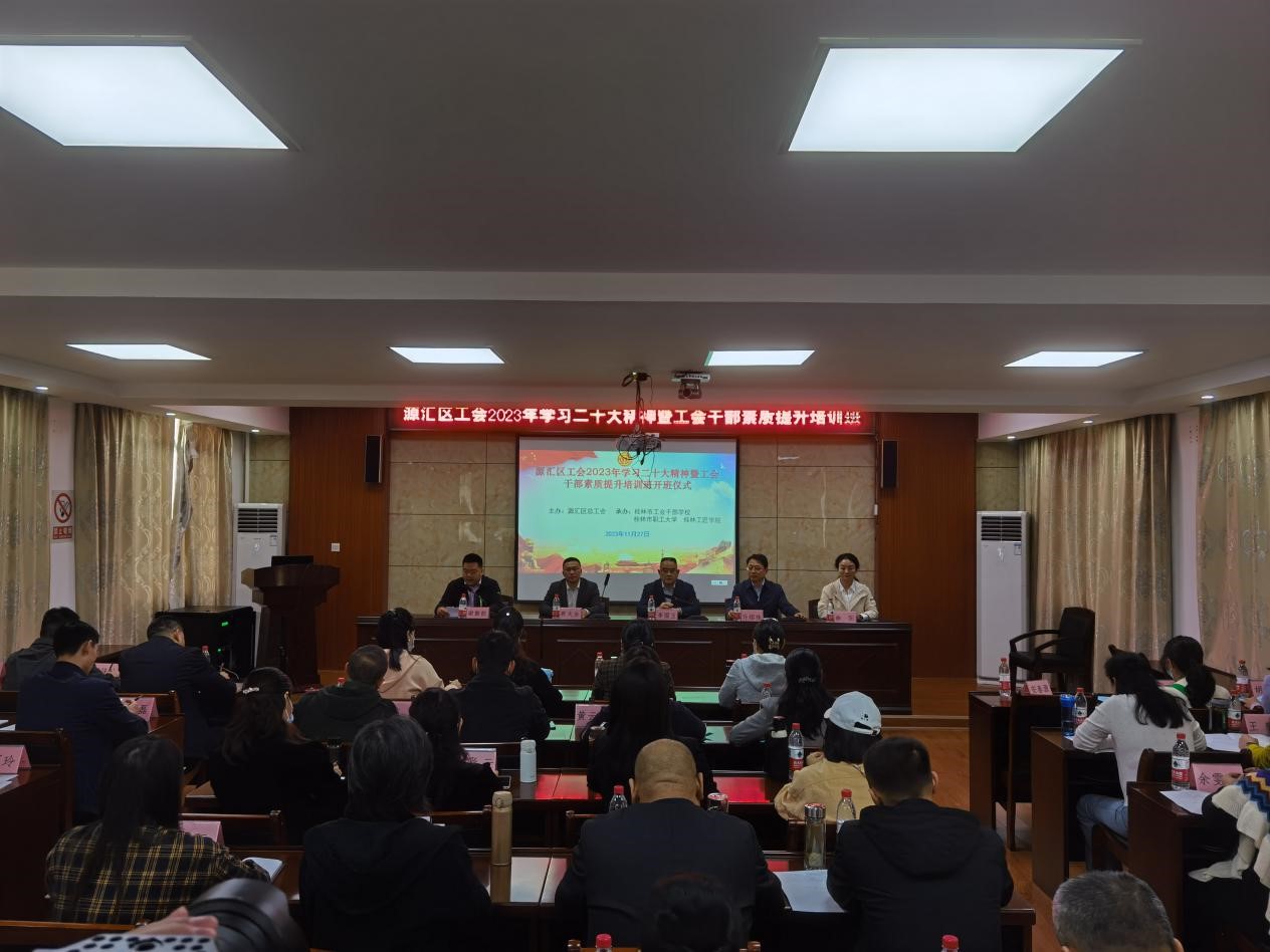 為深入學(xué)習(xí)貫徹黨的二十大精神,全面深入學(xué)習(xí)貫徹中國(guó)工會(huì)第十八次全國(guó)代表大會(huì)精神,促進(jìn)工會(huì)干部能力素質(zhì)提升,11月27日,源匯區(qū)總工會(huì)主辦、桂林市職工大學(xué)(桂林市工會(huì)干部學(xué)校、桂林工匠學(xué)院)承辦的源匯區(qū)工會(huì)2023年學(xué)習(xí)黨的二十大精神暨工會(huì)干部素質(zhì)提升培訓(xùn)班在桂林開(kāi)班,來(lái)自全區(qū)各機(jī)關(guān)、部分事業(yè)單位和社區(qū)工會(huì)干部40余人參加了培訓(xùn)。桂林市總工會(huì)黨組成員、副主席李國(guó)玉致歡迎辭,源匯區(qū)委副書(shū)記許紹偉作開(kāi)班動(dòng)員講話,桂林市職工大學(xué)(桂林市工會(huì)干部學(xué)校、桂林工匠學(xué)院)校長(zhǎng)蔣大為出席開(kāi)班儀式,副校長(zhǎng)謝振凱主持會(huì)議。