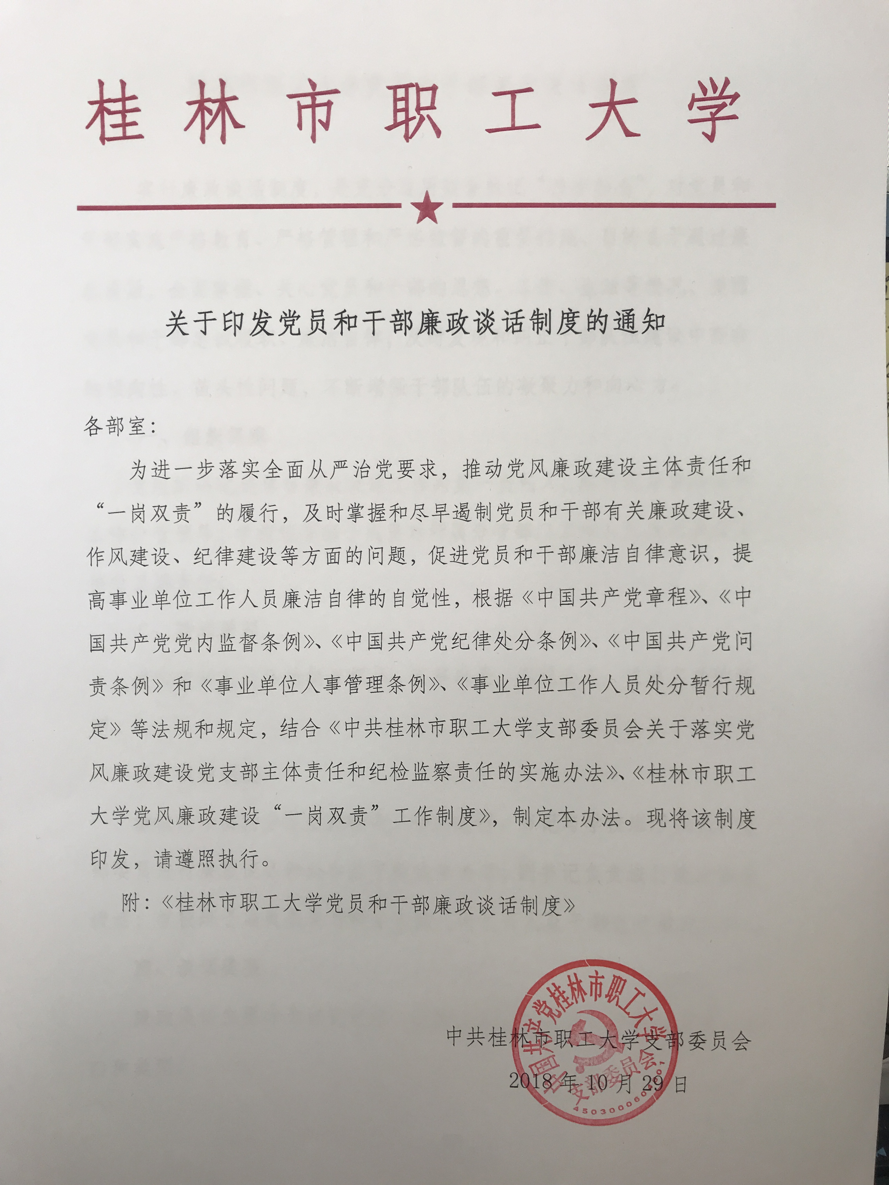桂林市職工大學(xué)廉政談話工作記錄