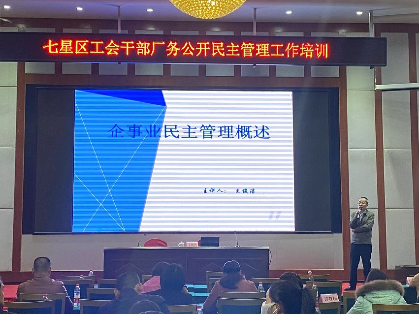 培訓(xùn)班由職工大學(xué)培訓(xùn)部謝振凱部長主持,七星區(qū)總工會常務(wù)副主席李繼武同志進行開班講話。隨后培訓(xùn)班圍繞“深入學(xué)習(xí)黨史”、“基層工會組建”、“廠務(wù)公開民主管理工作”、“基層工會財務(wù)知識”、“工資集體協(xié)商實務(wù)”和“職工心理健康”的課程展開學(xué)習(xí)。