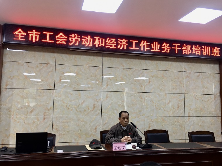 市總工會(huì)勞動(dòng)與經(jīng)濟(jì)部部長(zhǎng)葛雷為學(xué)員進(jìn)行工會(huì)勞動(dòng)經(jīng)濟(jì)工作業(yè)務(wù)培訓(xùn)