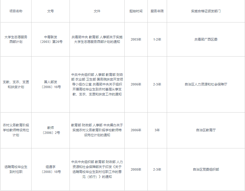 普通高校畢業(yè)生“下基層”服務(wù)項目一覽表